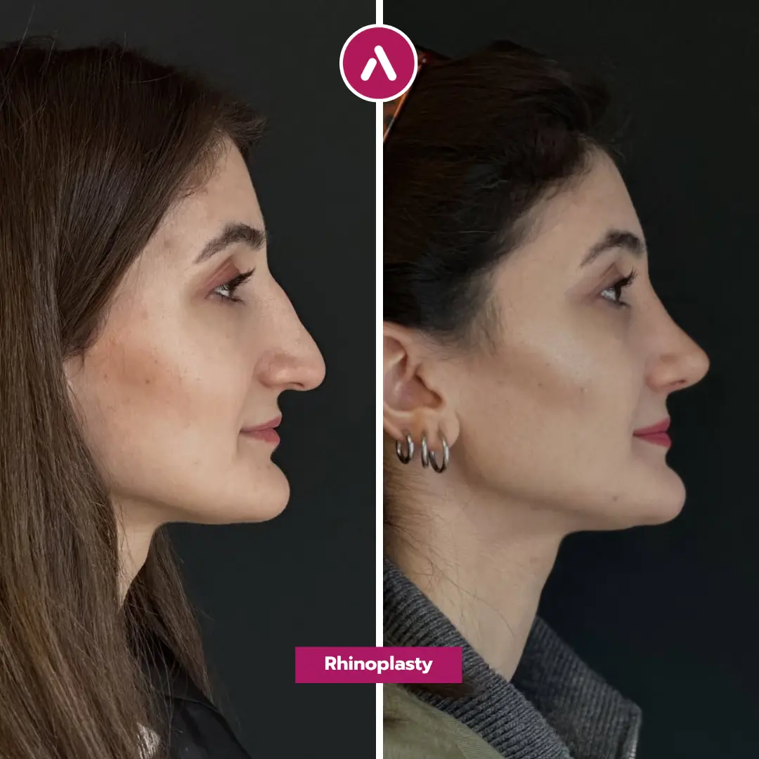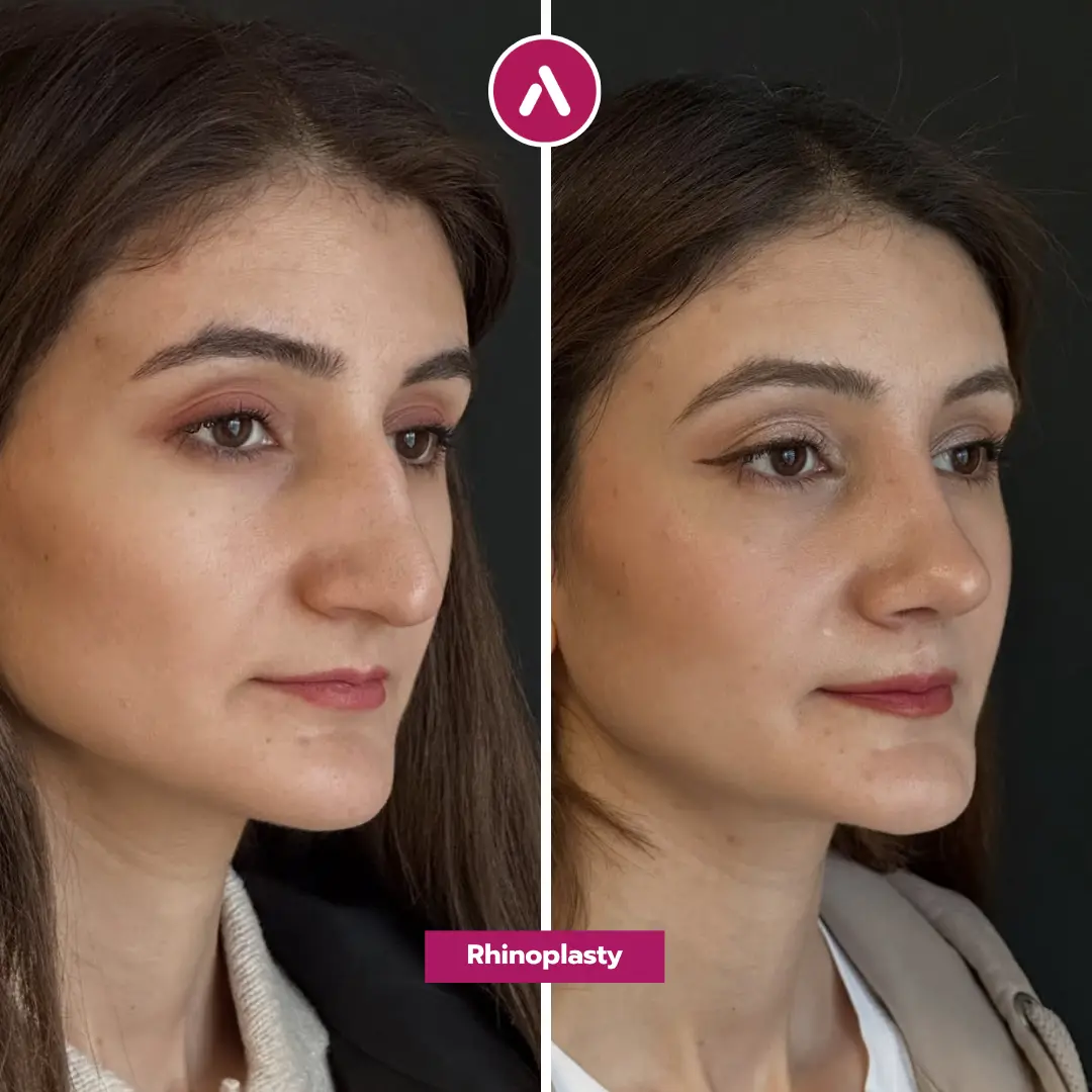 We are thrilled to present the rhinoplasty before and after results of a 27-year-old patient who traveled to our clinic from Canada. Like many of our international patients, she sought a solution that would address significant structural concerns while ensuring the outcome remained balanced and authentic. Her case is a definitive example of hooked nose rhinoplasty before and after, demonstrating how precise surgical techniques can soften the profile without looking artificial.