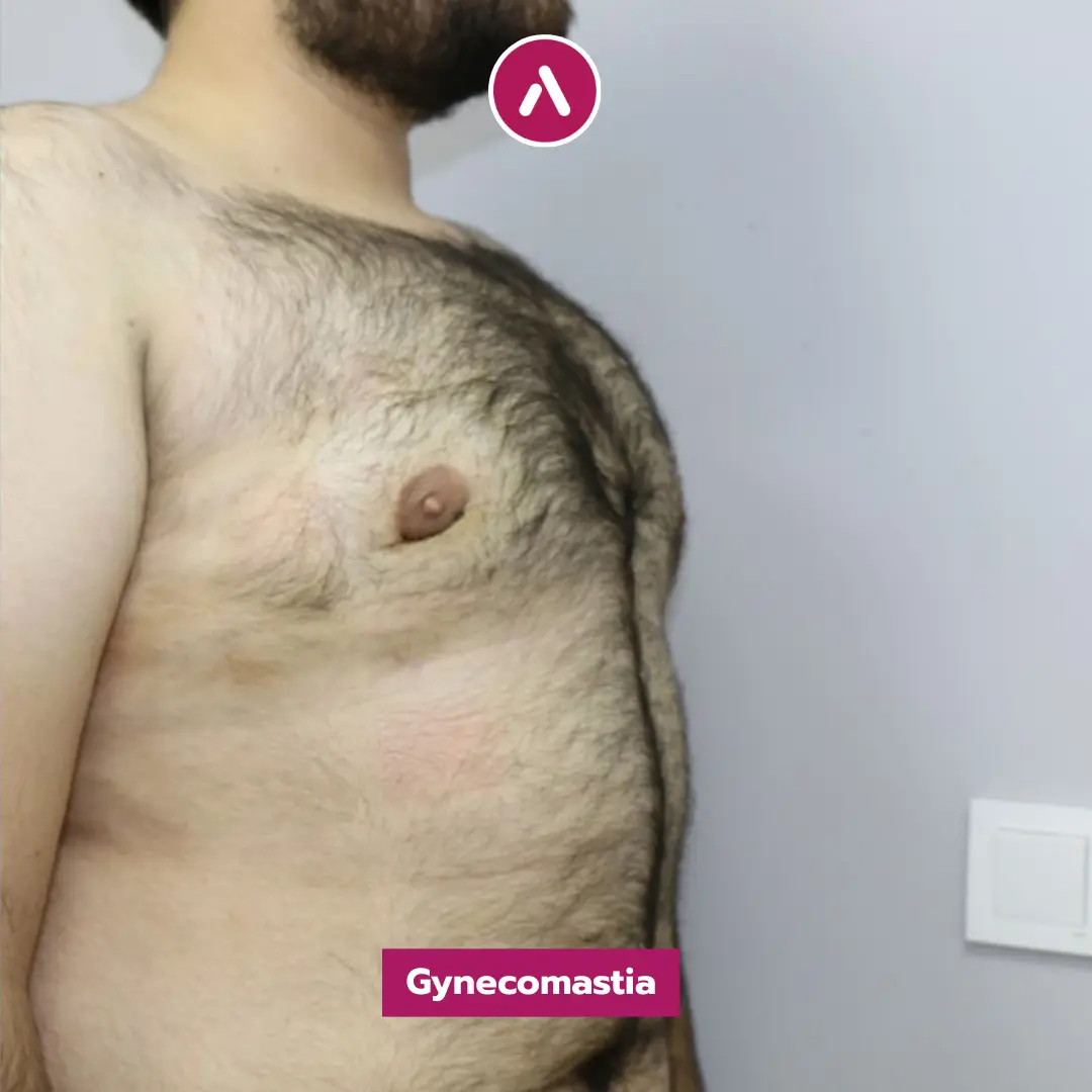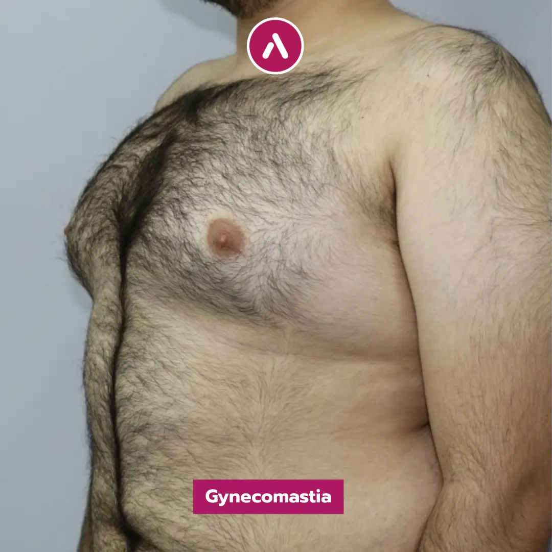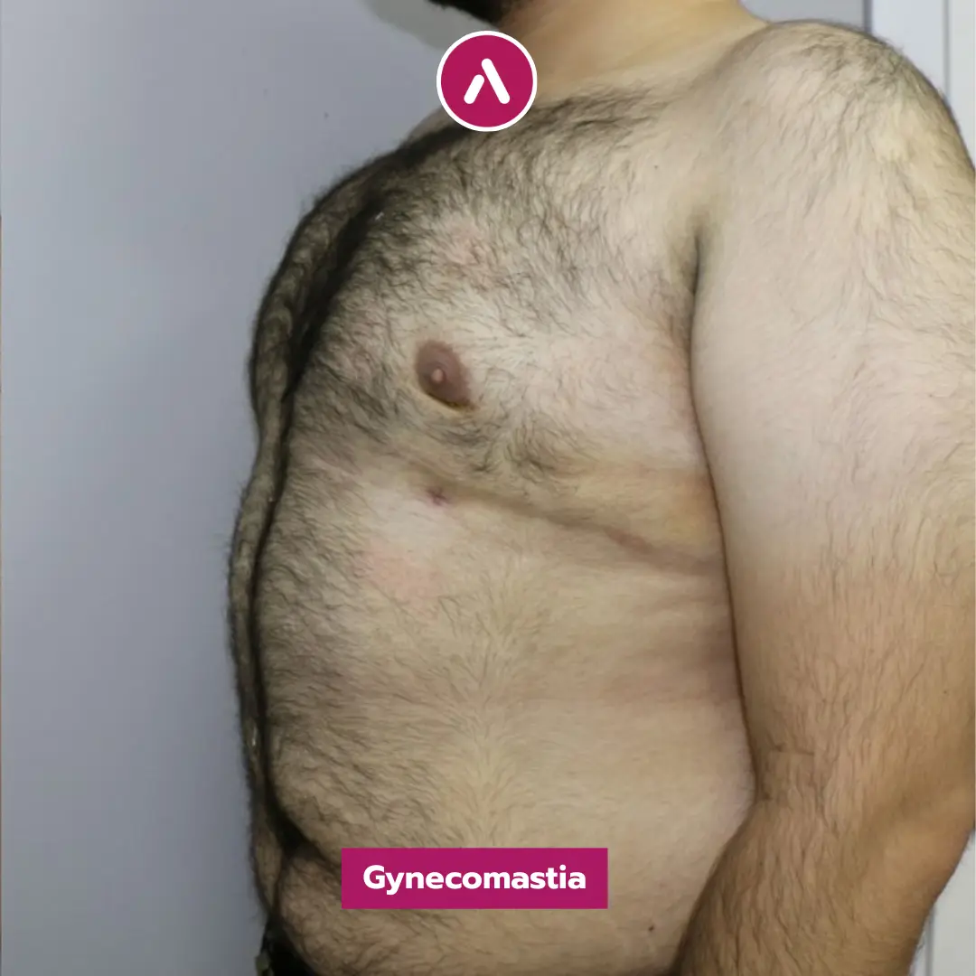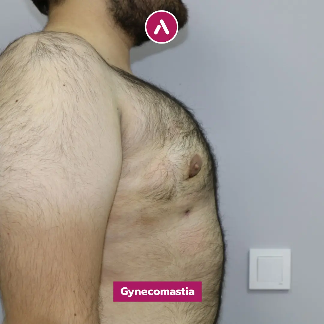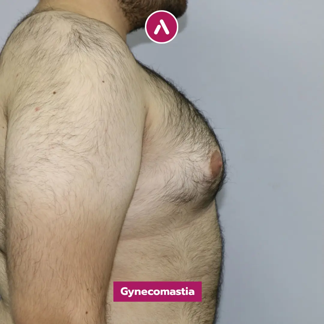 Results Analysis: As demonstrated in his gynecomastia before after photos, the protrusion is entirely gone. The side-profile images clearly show the elimination of breast tissue, replaced by a firm, masculine chest. Even with the presence of body hair, the new contour of the pectorals is visible and well-defined, showcasing the success of the gynecomastia surgery in turkey before and after experience.