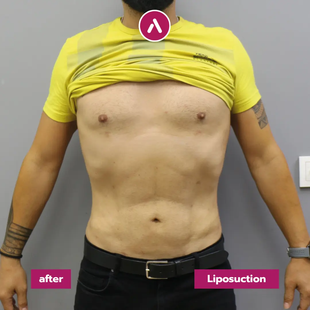 During his consultation, the patient expressed frustration that despite being active, he couldn’t achieve a sharp, defined look. His primary concerns aligned with high-volume searches for stomach liposuction for men:
