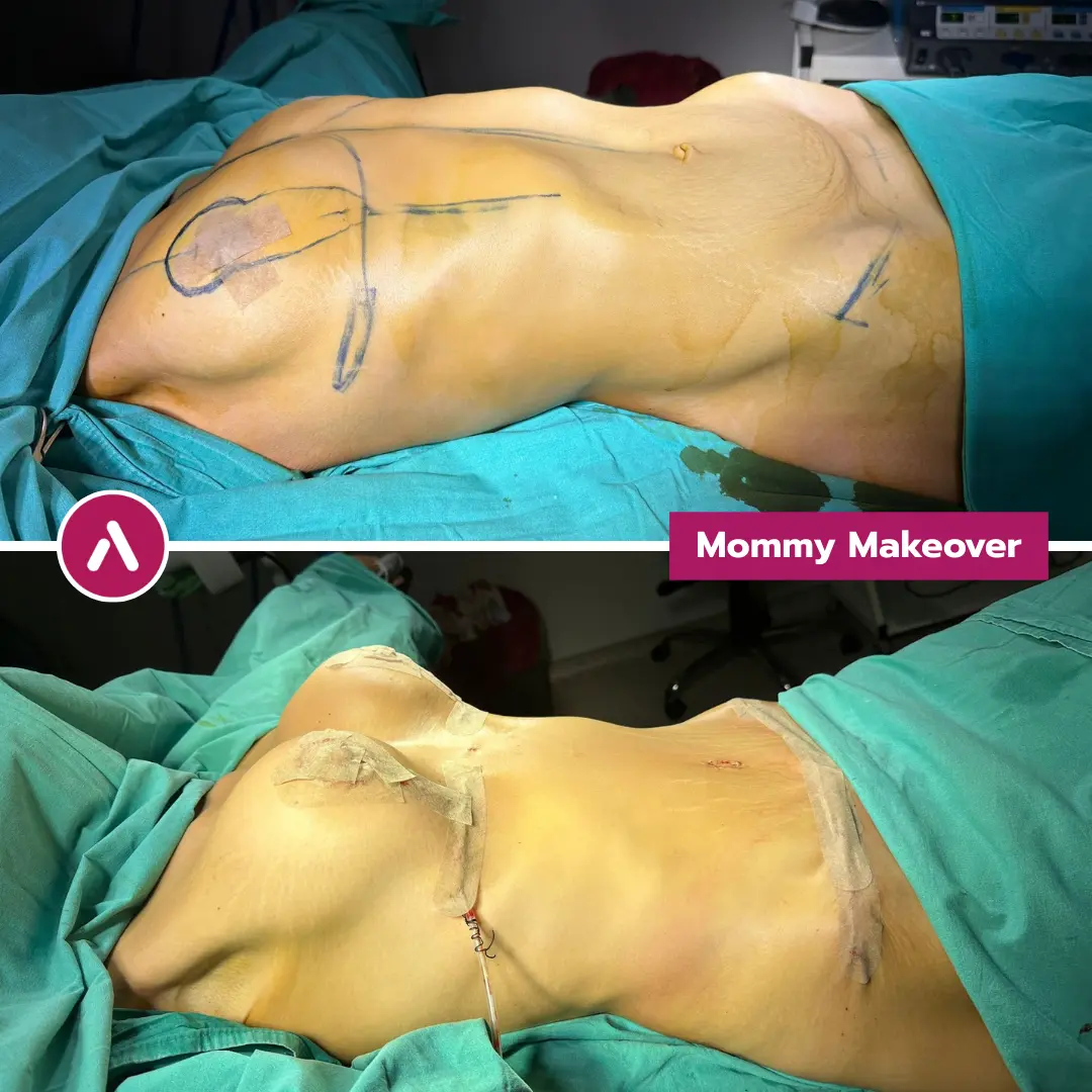 Motherhood brings wonderful joys, but it can also leave lasting changes on a woman’s body that diet and exercise alone cannot always fix. This patient presented with concerns common to many women in their 30s: a sagging midsection and breasts that had lost their youthful perkiness. In her search for the best mommy makeover before and after results, she looked into mommy makeover turkey before and after cases, ultimately trusting our clinic for a high-definition, personalized approach.