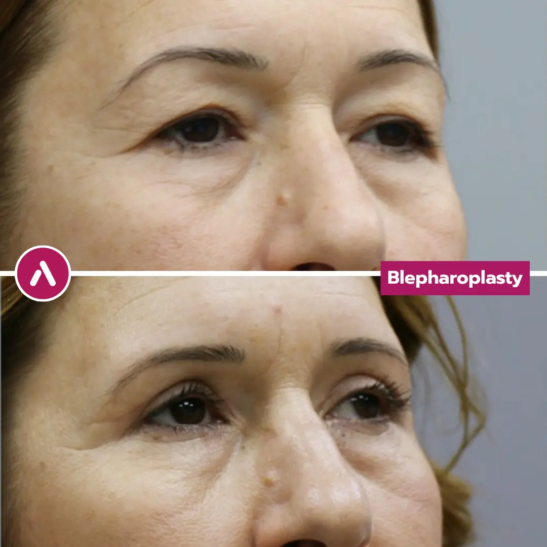 We are delighted to share the upper blepharoplasty before and after results of a 47-year-old patient who visited AKM Clinic from Canada. Like many women in their late 40s, she noticed that heavy, hooded eyelids were making her look tired and older than she felt. Her case is a perfect example for those researching hooded eyelid surgery before and after, proving that a subtle, targeted procedure can dramatically open up the face and restore a youthful gaze.