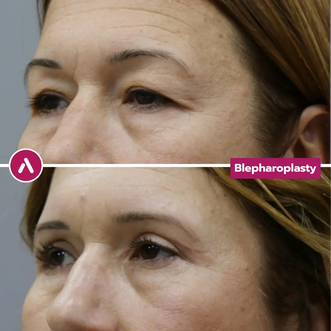- 3/4 Profile: The eyelid platform is now visible, providing a smooth, youthful contour. The blepharoplasty before and after difference is clear: alert, vibrant, and refreshed.